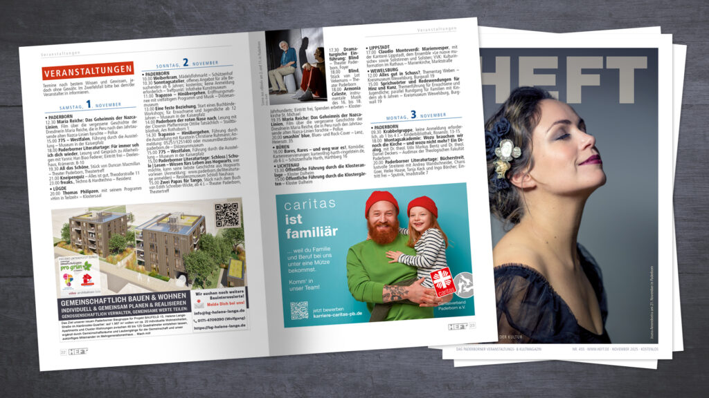 Auf dem Titel des November-HEFTes seht ihr Joana Amendoeira, die ihr am 22. November beim 37. Fado-Abend im Berufskolleg Schloß Neuhaus erleben könnt. Weitere musikalische Höhepunkte sind sicherlich der Auftritt des Gitarristen Sönke Meinen im Deelenhaus (13.11.) und das Konzert des Ensembles Unspoken Consort am 23.11. im Audienzsaal Schloß Neuhaus. Für die ganze Familie stehen […]