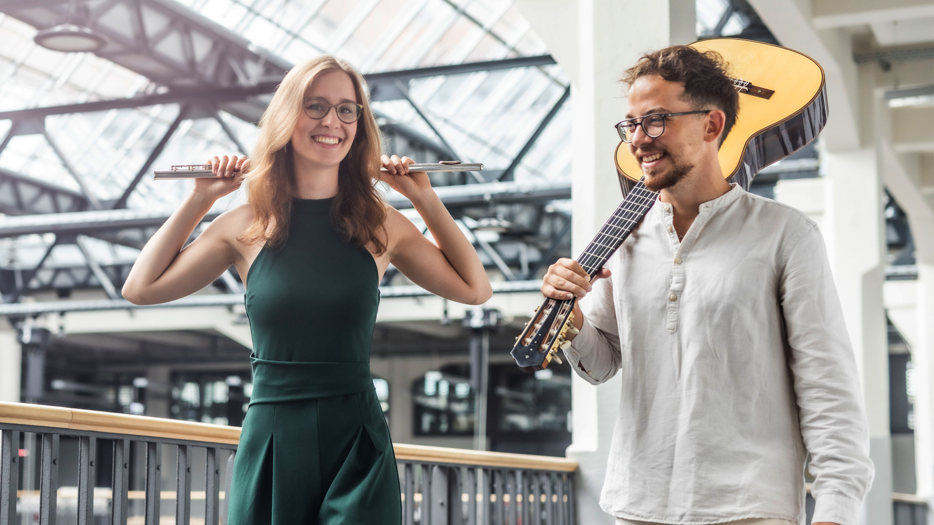 Elena La-Deur (Flöte) und Noel Shutina (Gitarre), vielfach mit Preisen ausgezeichnet, bilden in dieser Besetzung das SolDuo. Im Kammerkonzert spielen sie Originalwerke für ihre Besetzung, aber auch Bearbeitungen, bei denen die Laute oder der Basso continuo durch die Gitarre ersetzt wird. Es geht durch die Jahrhunderte vom 16. bis zum 20. Jahrhundert – von John Dowland bis über Bach und Giuliani bis zu Debussy, Villa-Lobos und Komponisten unserer Zeit.