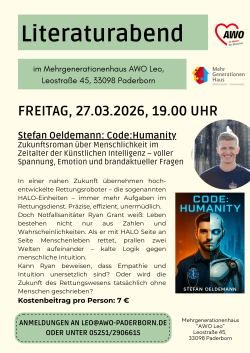 der Autor liest aus seinem Zukunftsroman »Code: Humanity«; Anmeldung: leo@awo-paderborn.de oder 05251/2906615