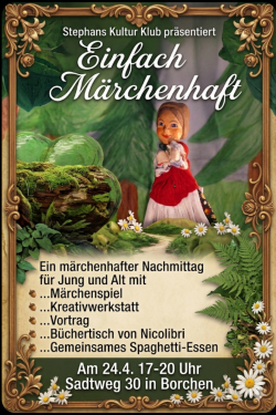 ein märchenhafter Nachmittag für Jung und Alt mit Märchenspiel, Kreativwerkstatt, Vortrag, Büchertisch, gemeinsamem Spaghetti-Essen