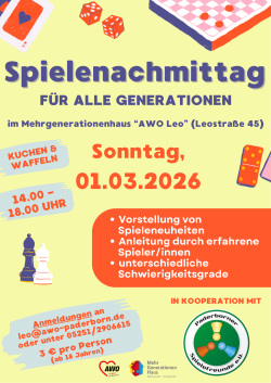 für Familien mit Kindern ab 5 Jahren; Kosten: 5,- € pro Familie; Anmeldung: c.ferres@paderborn.de